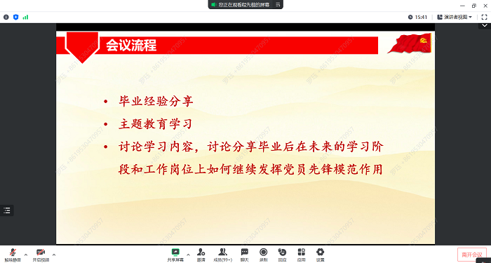 2023年6月18日晚6点,欧洲杯 本科生第一、二党支部顺利开展学习贯彻习近平新时代中国特色社会主义思想主题组织生活会暨毕业专题组织生活会。会议通过“腾讯会议”平台以线上会议的形式进行,由程先楷同志主持,共127名成员参与。
