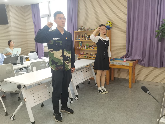 会议第一项,全体参会人员面向党旗站立,奏唱《国际歌》。第二,支部书记程先楷对莅临指导的罗部长和共建交流的研究生党支部同志表示欢迎。第三,程先楷同志介绍本次大会流程及拟发展的积极分子。第四,积极分子陈晓曦宣读入党志愿书,阐述自己的入党动机、为人民服务的情况,表明自己入党的志愿和决心。第五,介绍人宣读意见,支委会宣读政审报告后,其他同志分别该同志进行评议,参会正式党员表决。第五,支部书记宣读《党支部会议决议》,同意发展陈晓曦同志为预备党员。最后,新预备党员陈晓曦同志发表入党感言,感谢党组织的培养,未来将坚持学习,努力提升自己,成为一名更加合格的共产党员,继续在党的带领下为社会做贡献。