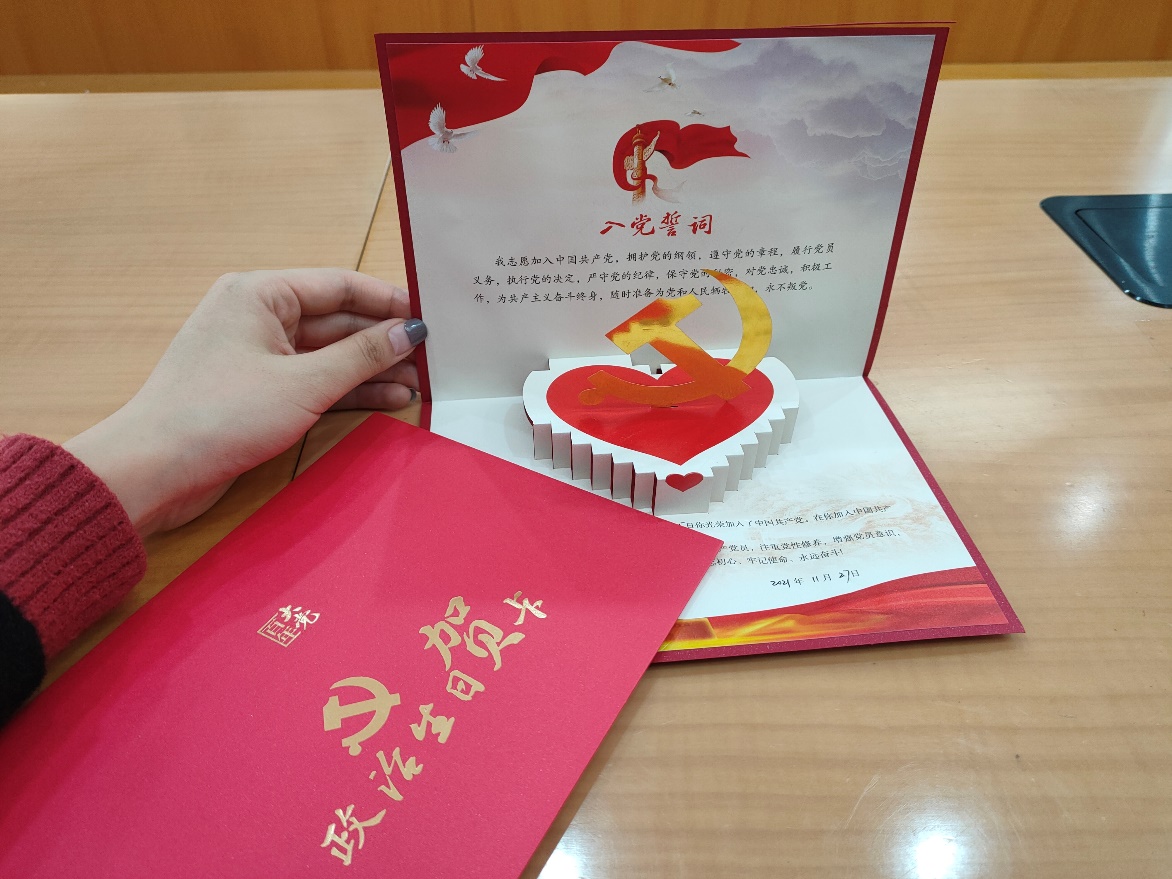 最后,党员同志进行无记名投票,并由支部书记宣读支部大会决议。最终,3名同志均被发展为预备党员,她们也分别发表了自己的感想,一致表示感谢支部其他同志的帮助和付出,自己要更加积极向党组织靠拢,更严格要求自己,争做合格党员! 在会议接近尾声时,支部书记带领全体老党员和3位新发展党员一起宣读入党誓词。此次发展大会圆满结束。