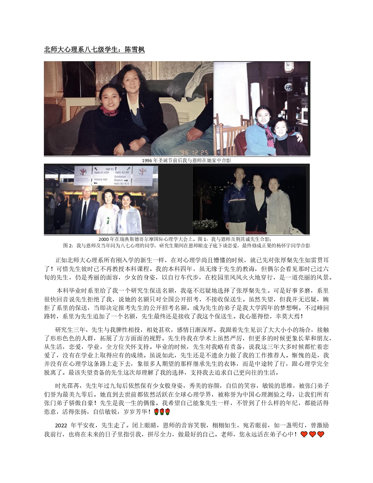 华南师范大学心理学院张卫教授、王穗苹教授唁电