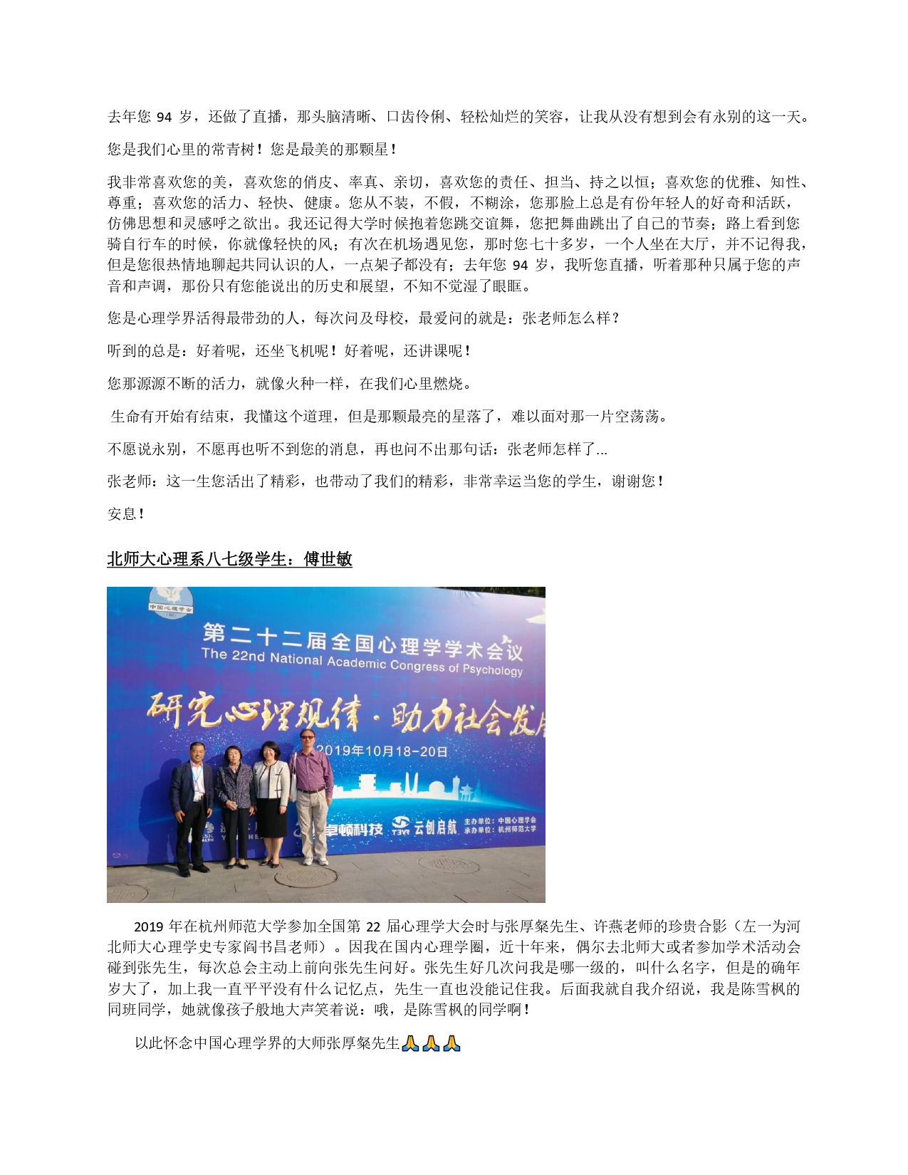 纪念文章 | 教泽流芳,山高水长——深切悼念张厚粲先生