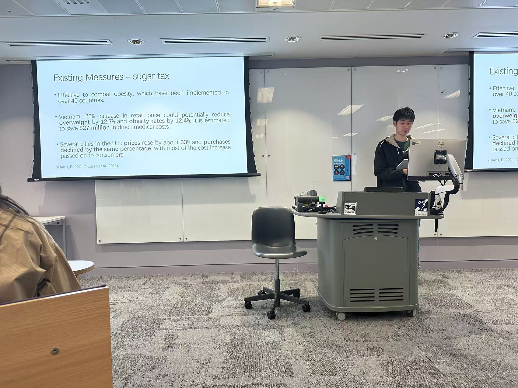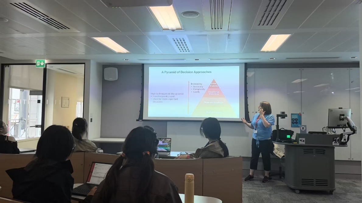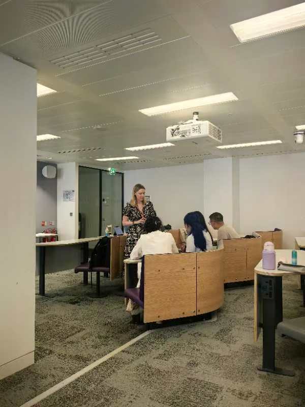 整体的课程设置相比我们平时接触的稍显简单,但考虑到语言问题,上课的体验并没有因此变得特别轻松。课堂上,老师们经常会多次停下来等待学生们的回应,如果没有人主动回答,她们一般会点名询问。这种互动方式显然十分注重课堂参与,这可能是为了实时检测学生的听课情况,确保学生们跟上了课程进度,或者是希望通过互动来获得学生对课程内容的反馈。除此之外,课堂上进行小组讨论的频率很高,形式一般是在3到5分钟内对问题进行讨论与总结,最后发言。因为受限于班级规模与时间,不可能让每个人进行分享,因此采取这种形式或许是为了让每个人都能有一定的表达的空间与机会。 在他们的教学环境中,即使是一些非常不成熟或者模糊的想法,也被大力鼓励提出与老师进行讨论。老师们表现得十分乐于倾听学生的见解,无论这些见解是否经过充分思考。这种开放的交流氛围使得更多学生都感到可以更加自由地表达自己,以此参与到课堂的讨论中。课堂上的互动不仅仅是为了答题,更是为了在师生之间建立一种交流和理解,帮助学生更好地掌握课程内容。这种方法虽然可能增加了一些语言交流上的难度,但也为学生提供了一个宝贵的机会去练习和提高他们的语言能力,同时培养他们的批判性思维和表达能力。 我们为期10个工作日的课程包括三门核心课程(每门课程各占3天),以及在最后一天集中的小组展示。三门课程的内容涵盖了决策心理学、心理学研究方法和心理健康。最终展示的主题是讨论心理学如何在环保或新科技的应用中发挥作用,要求展示的想法具备一定的可行性,并基于前9天所学的知识进行论证。尽管任务较为复杂,但准备时间比较充足,课程安排也特别留出了小组讨论的时间,供我们推进报告的进度。老师们也积极参与讨论,为学生提供建议和支持。