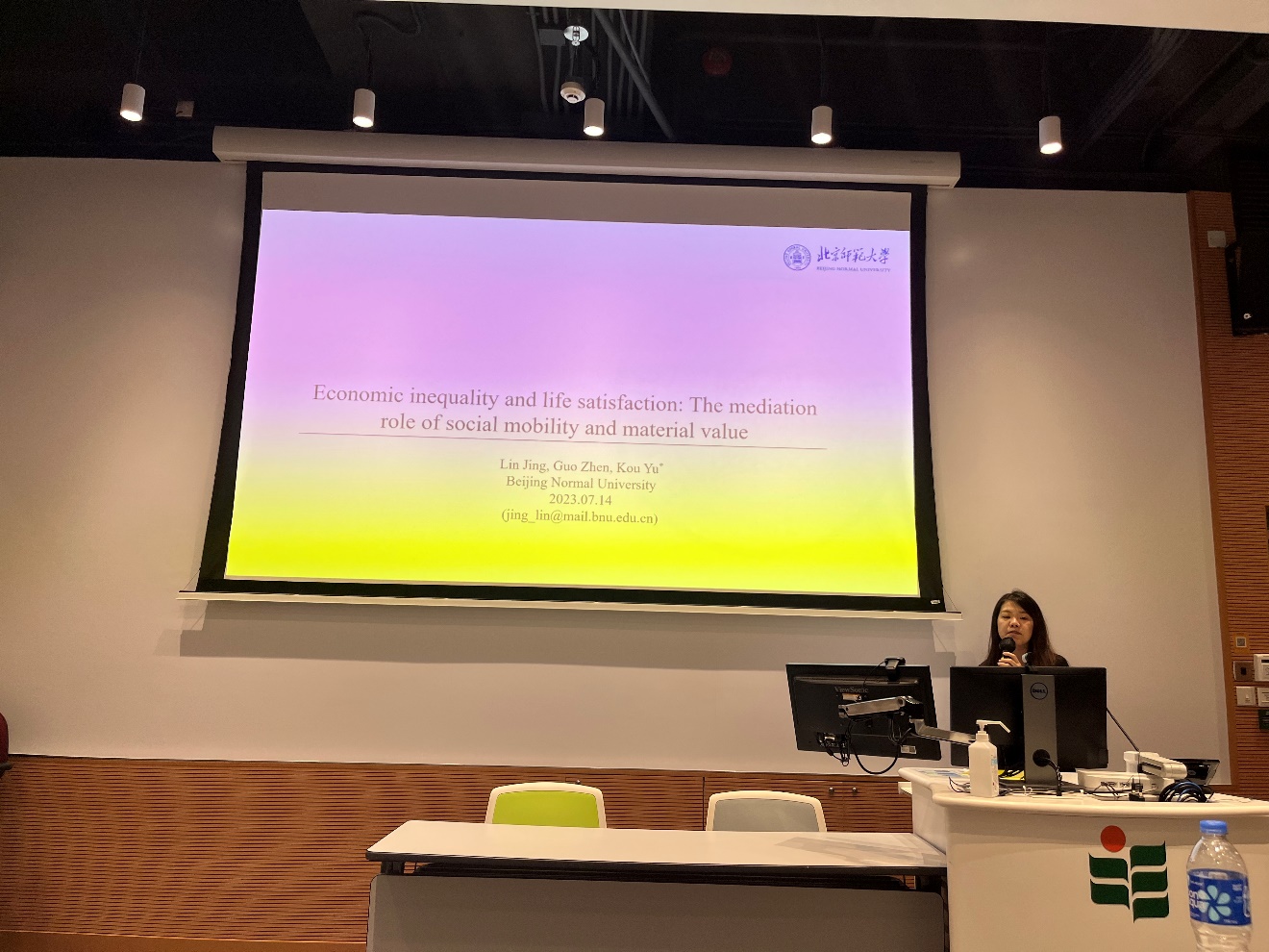 从 7 月 13 日至 15 日,我参与了这一学术盛宴。在这三天里,我有幸听到了来自世界各地的学者分享他们的最新研究成果。每一次的分享都是一个学习的机会,让我对社会心理学有了更深入的认识。 关于我自己的口头汇报,近期的研究文献指出,经济不平等与一系列个人和社会的结果有关,其中包括较差的心理健康状况、更高的死亡率和犯罪率。虽然之前的研究已经确立了客观经济不平等与幸福感之间的负面关系,但关于经济不平等的感知如何影响生活满意度的内部机制仍然不完整。在三个研究中(N = 23,162),我们检查了感知到的经济不平等与生活满意度之间的关系。结果表明,通过双路径模型,感知到的经济不平等预测了生活满意度: 一方面,感知到的经济不平等正向预测了物质价值,进而对生活满意度产生负面影响。同时, 感知到的经济不平等负向预测了社会流动性,反过来对生活满意度产生负面预测。最后,在第四个研究中,我们调查了从 1800 年到 2020 年在 Google Ngram Viewer 中出现的经济不平等、阶级分化、物质主义和幸福等词组的情况。这一双路径中介模型为理解感知经济不平等如何影响生活满意度提供了一个新的视角。基于这些发现,我们对经济不平等及其如何影响生活满意度有了更全面和平衡的理解,这对于提高个人幸福感具有深远的意义。显著的网络结构差异表明了发展趋势。本研究为探索该概念的核心组成部分提供了新的视角,未来可以通过干预顺从有益维度和利他主义维度来提高青少年的总体亲社会行为。我的汇报也得到了与会者的关注。尤其是斯坦福大学的 Hazel Markus 教授,她对我的研究提出了许多宝贵的建议,使我对自己的研究有了更深的认识。 会议的全面收获