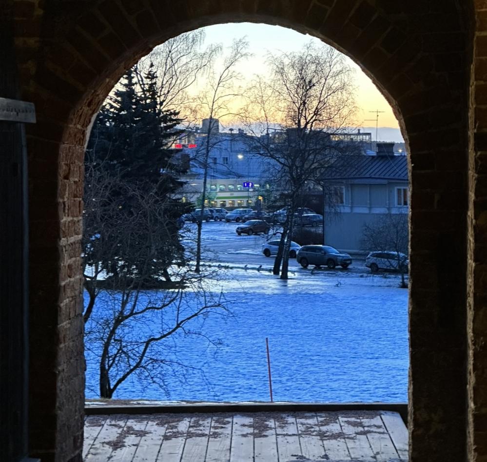 今天早上去了这边的天文馆,在城外,我们的大巴开过一大片雪地和一小段森林才到达目的地。馆本身一般般,给我们看科普电影虽然用的圆弧顶影院,但是还是架不住早上太困了直接睡过去了。第一个视频讲的暗物质,听得一知半解但感觉蛮神奇,第二个视频是关于极光的,还挺逼真的,就当自己看过极光了吧!后来跟我们介绍说这里原来是欧洲唯一一个可以制作天文望远镜玻璃的地方,深藏blue啊。 然后!我们就去到了他们荒废的天文台,算是那一片最高的平台了,从螺旋的楼梯走上去打开大门时先一步让我感受到的是狂风,然后见到一片豁然开朗的景象,真的真的很像电影里结束的场景,也是我第一次见被白雪覆盖的森林,还零星点缀着几个房屋,世界的尽头也就是这样了吧。 中午我们继续在森林里穿行后来到了一家“芬兰农家乐”,吃一些他们的传统食物。屋子里壁炉还烧着柴火,源源不断地输送着温暖,玻璃窗外就是近在咫尺的雪白森林,除了我们一行人,来的好像都是芬兰本地人,不得不说选地方的人真的很会,有种来得很值的感觉(虽然菜的味道不敢恭维)。 下午的活动依旧在森林,我们去参观了一个植物园,那是一个只有植物没有昆虫的植物园,非常合我心意! 回酒店之后我们十几个人又自发一起去了这边最有名的图尔库城堡,来回足足走了六公里多(问就是我们的交通方式只有步行),但是因为来到一个新地方“来都来了”的信念加持着我们,加上大家一起走说笑着很热闹,所以也就不觉得远了,而幸运的我们也在去城堡的路上看见了粉色的夕阳,在海风中迎来落日。 到城堡我们仅剩40分钟时间参观了(北欧人你们景点6点下班真的…很松弛),但是大家还是秉持着“来都来了”的强大信念买票进去参观(这边对学生的优惠真的很不错,成人票14欧,学生票7欧,我们因为人多加上时间紧就每人只需要3欧了),这个城堡相比白金汉宫、凡尔赛宫还是稍显简朴,但还算是别有韵味,我们在每一个房间转角处总是能精准的被古堡里的npc(其实是工作人员,但是穿着中世纪的衣服,就很像npc)吓到,加之我们去的时候天快完全黑下来了,就更显得阴森。还好我们一群十几个一起,要是两个人去估计要被吓得不轻。 出来拍合照的时候偶遇了热心游客帮我们拍照,还问我们是不是韩国人哈哈,但从概率上讲应该还是中国人更有可能吧。 感觉到了芬兰生活都变慢了,我每天竟然还有这么多时间思考和记录,所以我相信那句话“别急,慢慢来是最快的”。