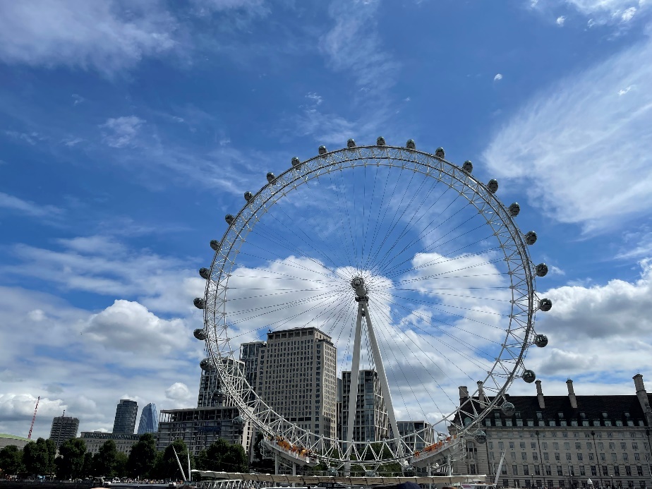如今,距我们团组的KCL之行已经一月有余。坐在北师大某教室的窗边,看着窗外不时探头的熙攘绿叶,我不禁又想起异国截然不同的风光来。 夏日的伦敦也并不炎热,即使我们赶上了几十年来伦敦最热的天气。从宿舍走到公交车站需要十分钟的路程,路边可见一大片恬静的绿地,有时这份恬静又被踢足球的小孩打破。去往strand校区要经过泰晤士河,伦敦眼随着河风吹拂映入眼帘……这是我第一次出国,伦敦的一切对我来说都是新奇而可爱的。