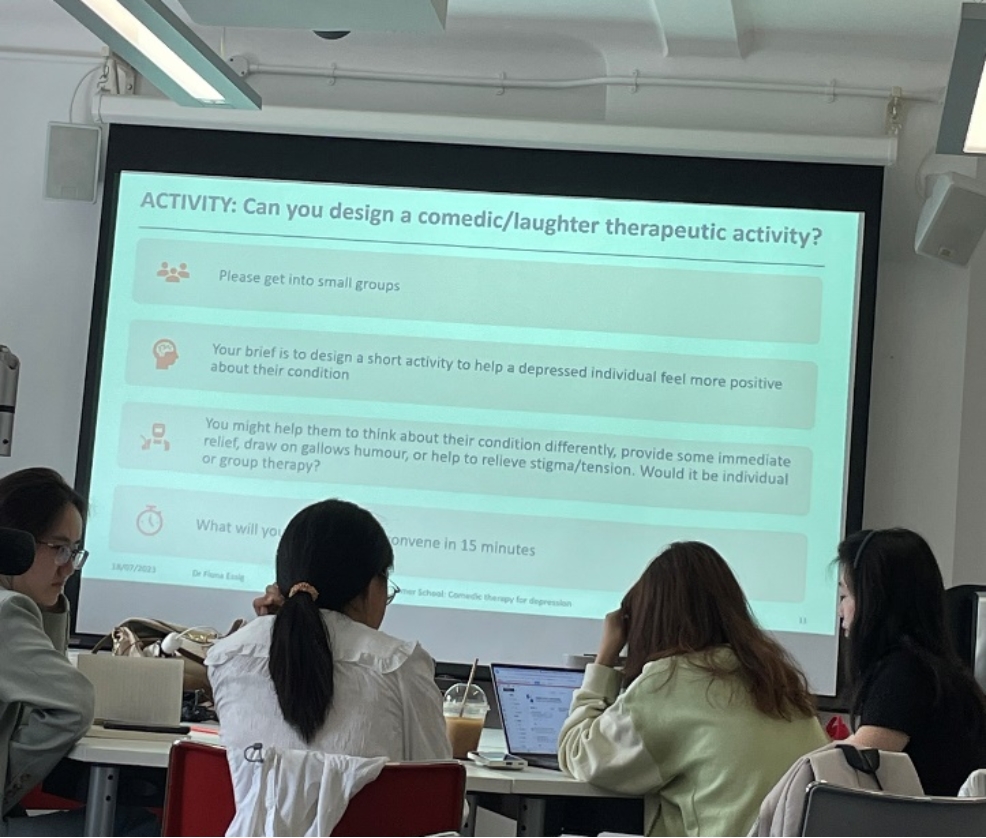 图片 4 根据成像调整脑电膏 我们佩戴了脑电图设备,进行了脑电波信号的采集和分析。通过观察不同状态下脑电波的变化,我更深入地了解了脑电图在研究中的应用。我发现这些神经生理学方法不仅令人惊叹,而且有助于解释人类认知和行为的神秘过程。这激发了我对神经科学进一步探索的兴趣。 1.4结课汇报 在最后,我们以小组为单位进行了汇报。我们组选择的主题是“我们如何利用心理学来应对气候危机并促进具有气候意识的选择?”根据第二周学习的知识和文献查阅,我们从当前偏差出发,设计了干预方案和实证研究,圆满完成了汇报。 2感想与思考2.1课程形式 在两周的学习过程中,最令我难以忘怀的是工作坊(workshop)的授课形式。在上课之前,对应的网站上会提供本节课的大致内容和准备材料。准备材料的形式非常丰富,有关于本节课前置内容的讲解视频,有需要提前阅读准备小测的文本材料,有即将讨论的文献,还有类似问卷的匿名发帖。这样的课前材料和任务一方面让我对课堂内容先大致有一个了解,另一方面也为课上进行的研讨做好铺垫。 在第一周临床心理学的工作坊中,我们首先会进行一个基于准备材料的开卷小测验,10分钟独立完成10分钟小组合作,并用一种类似刮彩票的方式确认答案。测验的内容既有类似阅读理解细节的判断,也有整体思想(如什么情况用什么诊断方法)的考察,题目较为灵活但难度并不是很高,帮助我们激活大脑熟悉情境。之后会依次回答老师提出的问题,有关于材料的内容概括题,因为各个小组之间的案例有所不同,需要互相进行讲解和介绍;更多的是问题形式的选择题,每个小组在规定时间内商议出一个答案并同时展示,在提问环节给出自己小组选择此答案的原因和理由,给出理由而不仅是答案是老师更为看重的。有的时候正确答案并不唯一,言之成理老师就会认同你的答案。