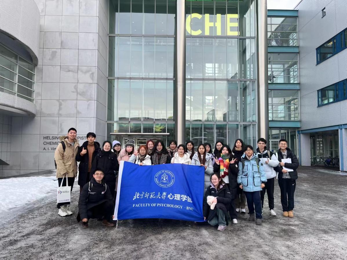 图 3 化学楼前的全员合照 而当芬兰教师对于现代社会所需能力本身进行反思时,得出的结论是知识技能远比知识本身更重要。因此,芬兰政府在推行普通高中教育改革中通过与高等教育领域进行更紧密的合作,培养学生对于科学的兴趣以及严谨的科学态度与素养。 下午进行了化学实验室的参观,并亲身实践了一个有趣的实验。老师讲述了该实验室建立的初衷,便是在学生心中建构日常生活与科学研究之间的桥梁,通过一些生活必需品在化学世界中身份的转变,在难以真正接触科研的年轻学生心中播下一颗种子,从而浇灌一种科学精神与兴趣。 晚餐后的citywalk是与国内迥异的感受,当城市主街的灯光亮起时,湿滑的雪地,无处不在的黑色小石子在夜晚中以更朦胧更飘忽的姿态呈现,是与白天的狼狈完全不同的魅力,好像在北欧的区间中,一切朦胧且静谧的事物都有所安身之处。