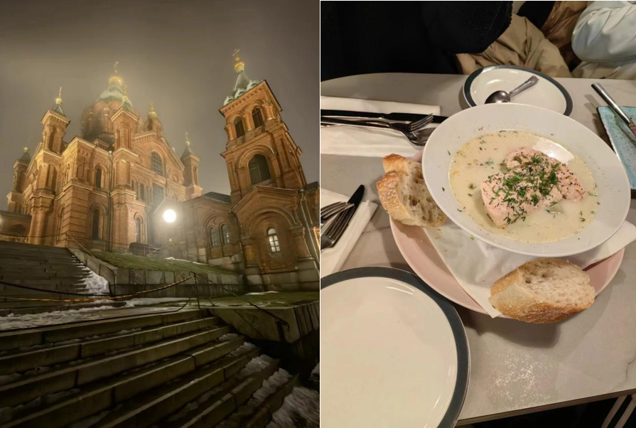 在欧洲杯的支持与两位带队老师的的带领下,2024.1.28日我们顺利抵达赫尔辛基。如果北京的夜景是一种用流光溢彩诠释了难以掩藏的繁华,北欧则是用冰雪、静谧与寥寥无几的灯光倾诉来自北极的童话,但童话并不热忱,热烈与纯真落不到实处,飘散在风雪中后,露出落寞、沉静与肃穆的内核。