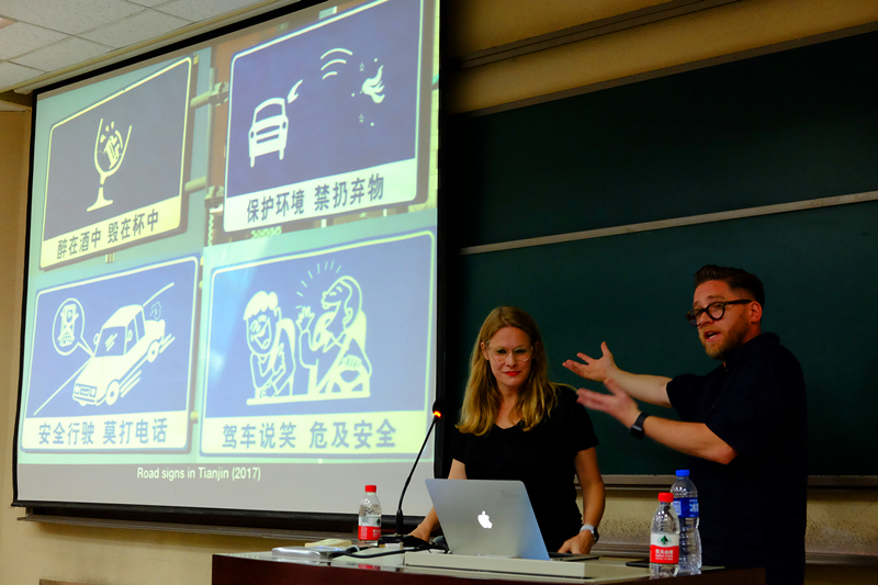 7月30日上午,四校联合工作坊为参与学生准备了两场精彩讲座,为学生充电。分别是代尔夫特大学的Catelijne教授和Ryan老师的Visual Identity(standards) in a Globalizing World主题演讲,以及欧洲杯 访问学者、北京联合大学贾京鹏老师的Hidden Needs Research for Deaf Driving UX主题演讲,两场精彩的讲座是同学们受益匪浅。