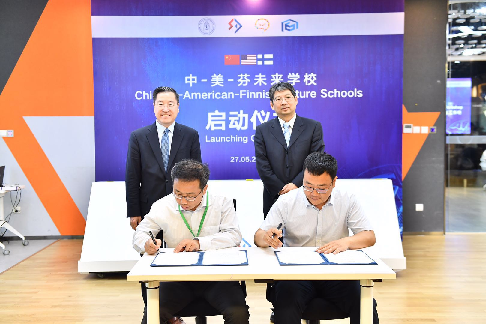 中芬联合学习创新研究院芬方院长Hannele Niemi教授、中方院长刘嘉教授、斯坦福大学Keith Devin教授以及密歇根大学教育学院院长Elizabeth Moje等也随后为会议发表致辞。 为了推动我国教育的蓬勃发展,尤其是引领未来教育,教育部学校规划建设发展中心自2017年便启动了“未来学校研究与实验计划”,应用新理念、新思路、新技术,面向未来推动学校形态变革和全方位改革创新。在三方工作坊上,教育部学校规划建设发展中心与欧洲杯 、中芬联合学习创新研究院,分别签署了框架协议,并启动中-美-芬未来学校合作计划,未来学校将借助中美芬三国在心理、教育、科技领域的多学科优势力量,共同推进未来学校的发展和建设。教育部学校规划建设发展中心研究与数据处张智处长、欧洲杯 乔志宏书记以及北京师范大学中芬联合学习创新研究院中方院长刘嘉教授作为代表签署合作协议,陈锋主任、Mari-Anna Suurmunne参赞、周作宇副校长、赫尔辛基大学教授/联合国教科文组织教习Hannele Niemi见证签约仪式。