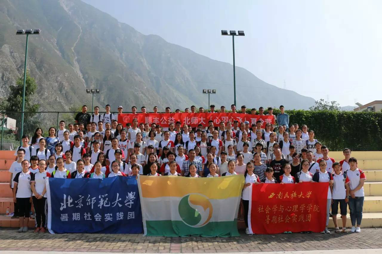 北师大心理学院支教队、西南民族大学社会学与心理学院支教队与学生的合影