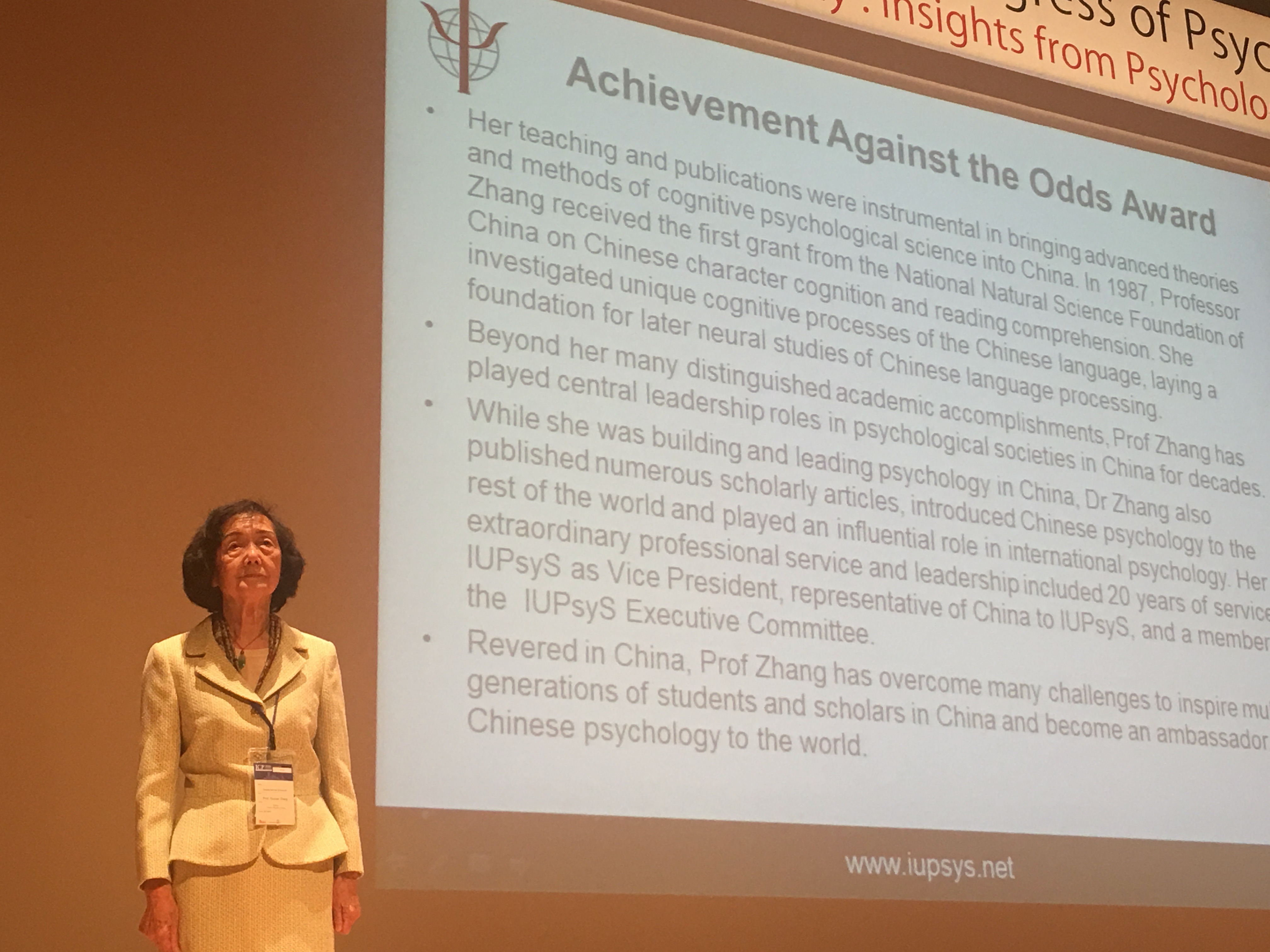 I was sad to hear of Professor Houcan Zhang’s passing. Hers was a remarkable life as exemplified by her receiving the IUPsyS Achievement Against the Odds Award in 2016 during ICP2016 in Yokohama (please see attached photograph). She will be remembered globally not only for her numerous and prestigious academic achievements, but also for the key leadership roles she played in Chinese and global psychology. My deepest condolences to Professor Houcan Zhang’s family, colleagues and friends on their loss.