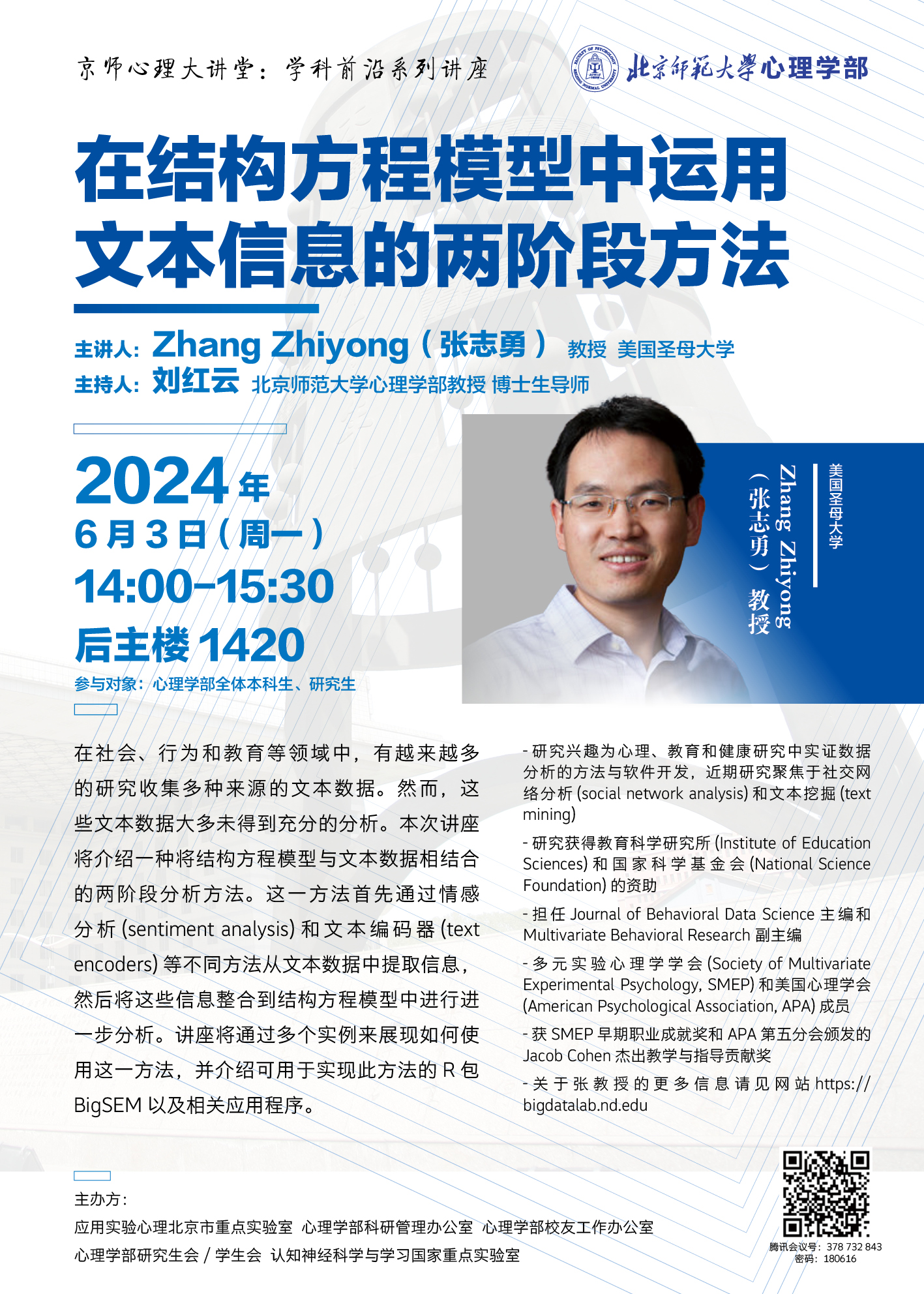讲座预告:在结构方程模型中运用文本信息的两阶段方法