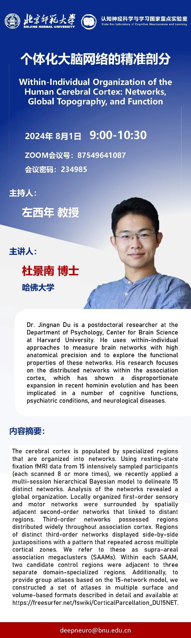 讲座预告:认知和大脑老化的个体差异——从成功老化到阿尔兹海默病