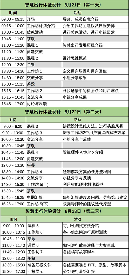 图7智慧出行体验设计工作坊日程安排 主讲人简介: Juan Jimenez Garcia博士,哥伦比亚ICESI大学交互媒体系副教授。15年人因工程研究经验。曾任香港理工大学设计学院助理教授,荷兰代尔夫特理工大学博士后。专注于工程心理学、体感用户界面、注意缺陷多动障碍(ADHD)传感技术等领域。