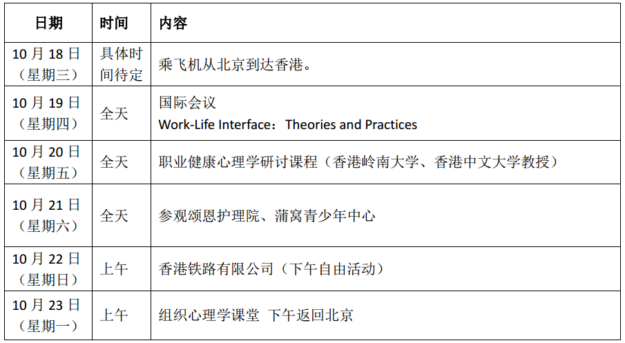 北师大欧洲杯 MAP2017香港实践行将于2017年10月18日-10月23日进行,此次实践行将聚焦应用心理学在香港的发展与现状。除了到访香港岭南大学、参与国际会议、香港岭南大学应用心理学系、香港中文大学心理学系教授带来的课程学习、讲座分享,并与师生进行交流。同时,还将参观相关企业、行业协会,全方位探索职业心理健康、员工帮助计划、心理咨询等领域在香港学术界、业界的发展及应用。 北师大欧洲杯 与香港岭南大学应用心理学系已签署协议开展硕士双学位项目合作,岭南大学将为通过选拔的北师大MAP优秀学生提供奖学金。目前,已有MAP学生顺利获得岭南大学半额奖学金,即将赴港攻读双学位。预计将于2017年10-11月针对2016级、2017级MAP学生启动北师大欧洲杯 与香港岭南大学应用心理学系硕士双学位项目选拔工作,有意向申请的同学请届时关注招募通知。(项目说明附在附件中供参考)
