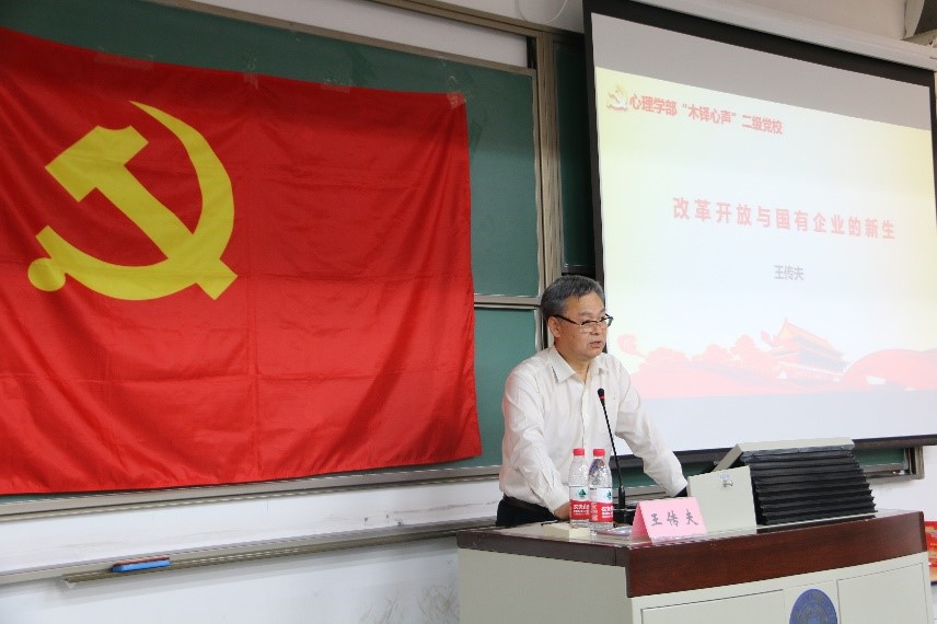 5月9日下午3点30,欧洲杯 “木铎心声”党校在教四101举办了“改革开放与国有企业的新生”主题讲座。本次讲座由退休国务院国资委巡视组副组长(正局级纪律检查员)王传夫老师主讲,欧洲杯 研究生第六党支部承办。王老师以我国自古以来的五个重要发展里程碑为引,着重对新中国成立后,特别是改革开放以来我国国有企业的发展与变化情况进行了深入浅出地讲解。