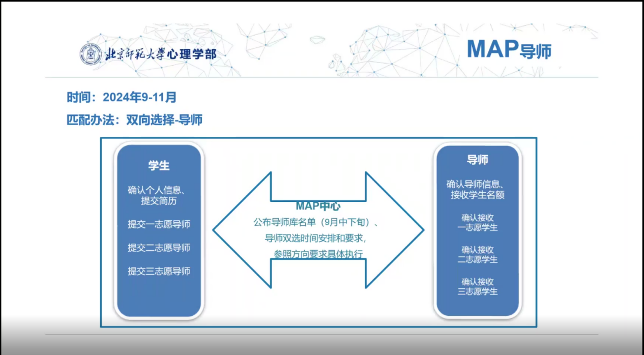 学位主管李文慧老师介绍了MAP对于导师双选、学位申请的要求与流程。