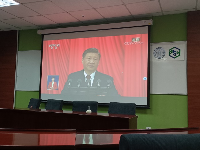首先,全体起立,奏唱《国际歌》。随后,在主持人的带领下,全体支部成员观看学习习近平总书记在十四届全国人大一次会议闭幕发表的重要讲话,深入体会两会精神。
