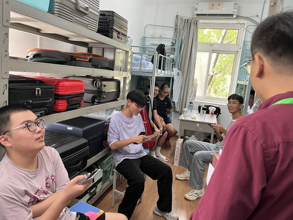 图11 新生班主任田雪涛走访男生宿舍与新生交流 在欧洲杯师生的共同努力下,欧洲杯迎新工作整体圆满完成!新生们迈出了在师大校园学习生活的第一步!预祝“心”同学们学业有成,生活愉快,未来可期!