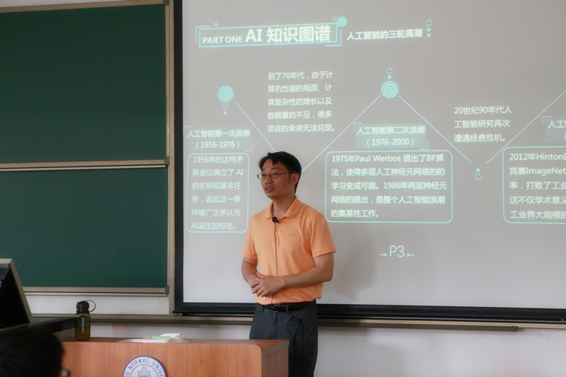 随后郑老师以AlphaGo和人类的围棋大战为切入点,介绍了人工智能这个在2016年因为人机大战聚焦了国民目光的技术,以及人工智能在中国的影响力分析。同时插入视频进行讲述,比如DeepMind创始人讲解AlphaGo怎么来的,机器人弹钢琴如何让人傻傻分不清。期间郑老师与同学们积极互动,大家都觉得看起来复杂的科学技术原来也可以这么简单有趣。