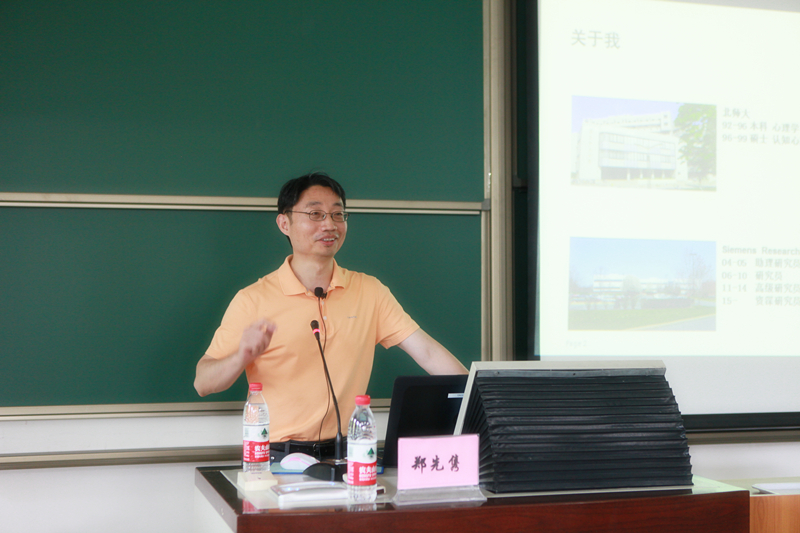 接下来郑老师和大家探讨了什么是“Machine Learning”,机器如何学习解决问题 (learn to solve the problem) ,详细给大家解释了“Deep Learning”这样的机器学习方法。最后关于机器到底能做到什么程度,大家也进行了积极的畅想。科技大大嵌入生活,改变着我们,在人工智能不断发展的时代作为人类应该如何去发展自身才不会被机器取代,以及在人工智能技术背景下如何驱动用户体验的改善,这些都将是MAP-UX方向学生们学习和思考的方向。 图3 西门子美国普林斯顿研究院资深研究员郑先隽老师与欧洲杯 应用心理专硕分享智能时代的用户体验