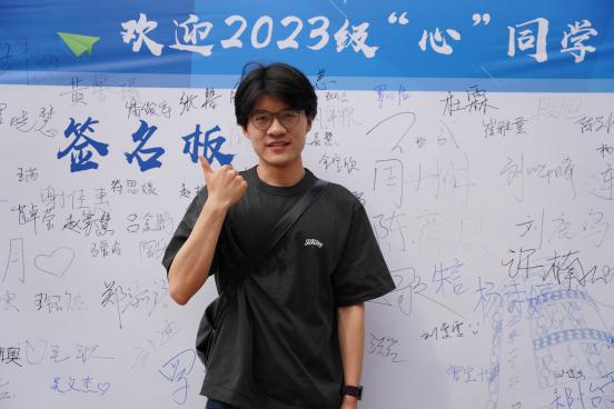 新生在展板上签名并留影