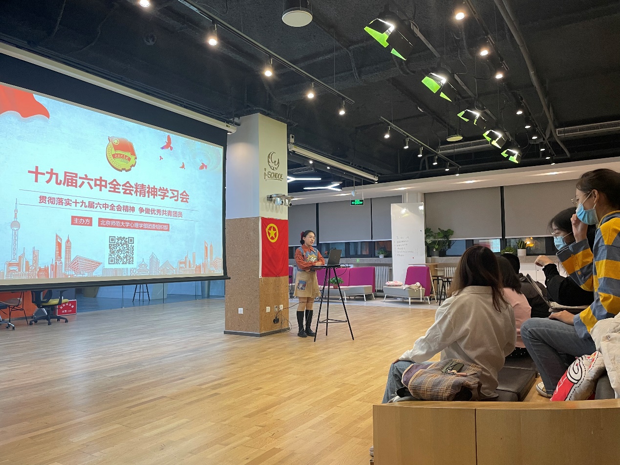 最后,同学们进行了激烈的探讨与交流,分享了各自的学习感悟: 学生会主席柳笛: 通过会议公报以及发布会文件,我们对于这次盛会的内容和意义有了更为深入的了解。会议充分肯定了自十九届五中全会以来中央政治局的工作,通过了两项重要决议。其中,《中共中央关于党的百年奋斗重大成就和历史经验的决议》,对于全党百年奋斗重大成就和历史经验进行了格外系统的总结。通过文件的系统阐述,我们非常有条理地梳理了党多年来带领我国实现的重大成就,重温自改革开放以来我国在经济建设、人民生活上日新月异的变化。同时,在发布会文件中,我们也了解到了党对于我国经济建设成就经验的精准总结以及对于我国特色的一带一路建设等未来的规划。总而言之,通过文件的学习,我们更加系统地理解了党的建设成就,增进了民族自豪感,为党的正确领导和中华民族的奋斗精神所鼓舞,励志在学生工作中传递这份振奋之情。