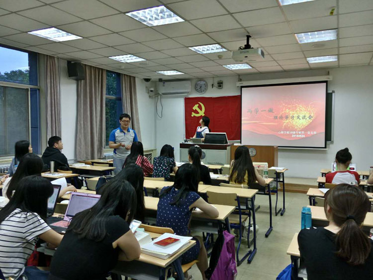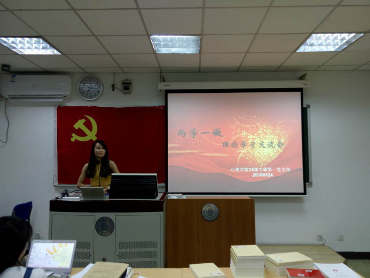 2015年5月24日晚7点,心理学院2015级专业硕士第一党支部在教二313教室举行“两学一做”理论学习交流会,共35名党员出席了本次学习与交流会。