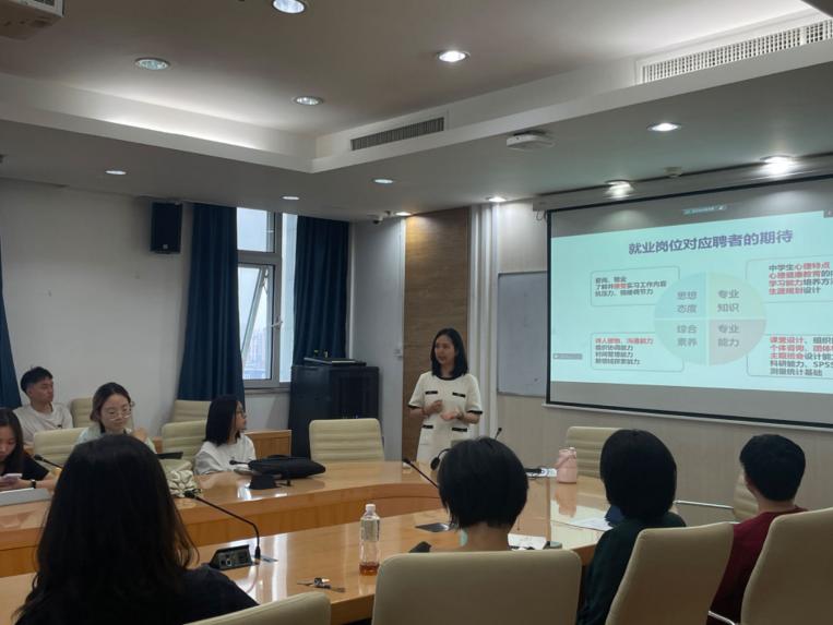 随后,本科生人才培养团队师范方向教育实习负责人陈师韬老师围绕教育实习的各阶段目标逐一做了介绍,并鼓励同学们在实习中积极将在校学习的理论知识与实际教学情境相结合,通过观察、参与和反思,不断提升自己的教学能力。同时,会议还就实习前需要做的准备与注意事项进行了讲解,也强调了实习过程中的安全问题和职业道德相关内容。