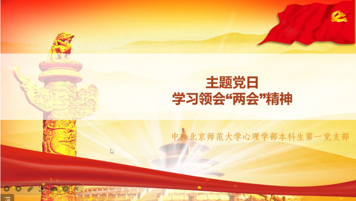 首先,陈璐同志带领全体同志奏唱了国际歌。 然后,陈璐同志为大家简要介绍了两会议程,建议同志们从心理健康、教育、大学生就业等领域出发,去关注两会中感兴趣的议案和提案,自行学习后续的会议内容。