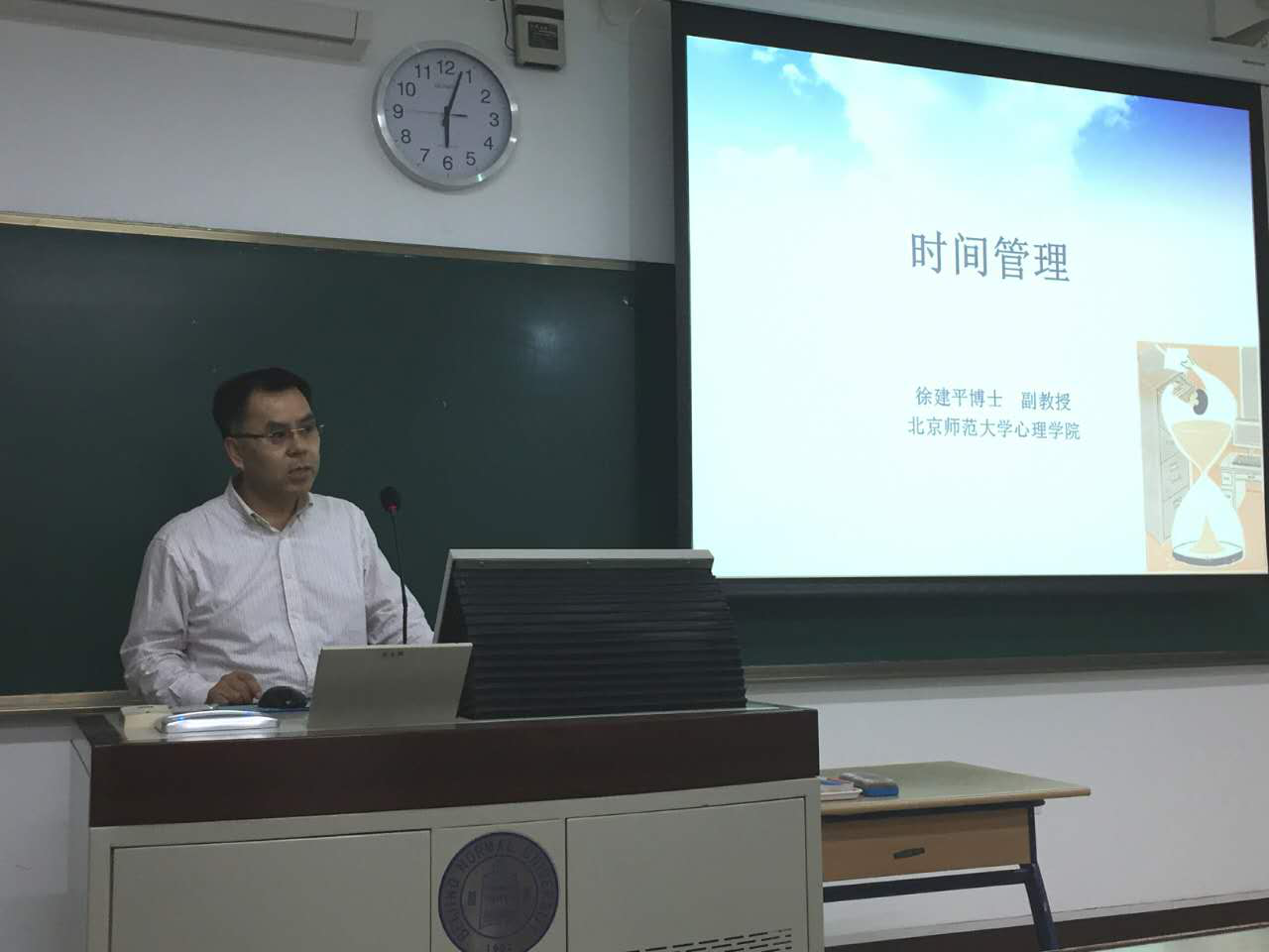 2017年5月11日下午,我院在教二102顺利举办了第二场“本科新生导师交流对话会”。徐建平老师作为主讲人,与到会的大一新生们分享了关于时间管理的方法与经验。 对话会上,徐老师首先介绍了进入大学之后角色转换的重要性,强调从要我学到我要学,最后到我想学的一种状态的过度,并且强调了目标设定的重要性,并从专业的角度分析了该如何设立自己的目标。随后,徐老师结合自己的专业知识,就时间管理做了生动而具体的讲解,并介绍了由目标任务列出分解任务清单、利用九宫格写出目标、利用甘特图和各式软件等管理时间的有效方法,并希望同学们能通过时间规划去除自己的不确定,提升自己的控制感,尽快让自己适应,确定自己的目标,规划自己的时间,一路向前。最后,徐老师也就同学们感兴趣的一些问题做出了解答,本次新生导师交流对话会在同学们的掌声中圆满结束。