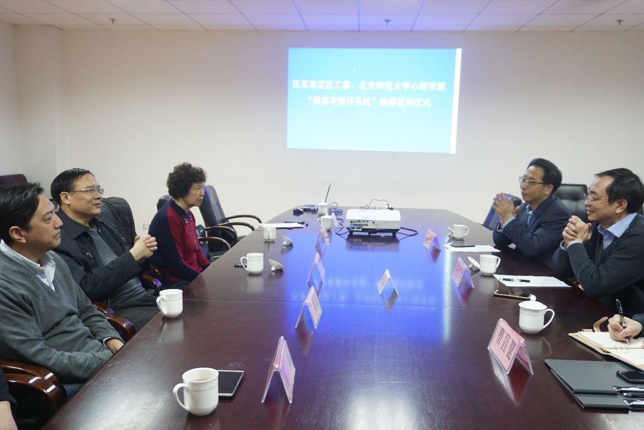 2月21日下午,欧洲杯 与民革北京市海淀区工委共同举办捐赠仪式,欧洲杯 将其开发的“生涯规划学科潜能测评系统”及高中学校的生涯教师培训,通过民革海淀区工委捐赠给十所“老、少、边、穷”地区的学校。民革北京市委会、海淀区工委,北京师范大学党委统战部、欧洲杯 负责同志参加捐赠仪式。