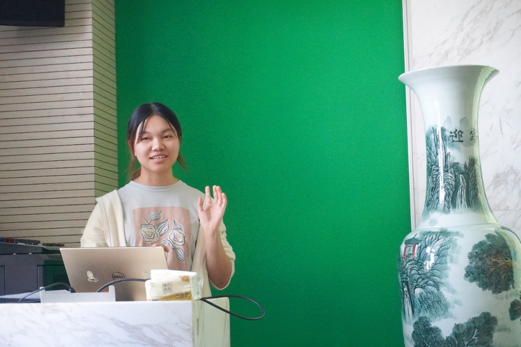 何菁淼同学进行分享 随后和大家分享的是来自20级的何菁淼同学,她对于如何在大学做好时间管理提供了自己的经验心得。面对从高中到大学可自由支配时间的改变,她用自己大一的时间安排为例,指出确认需要做的事物及其优先级很重要,同时,她也强调,对于每个人来说,重要且紧急的事情不尽相同,很大程度上是由自己的目标和规划来决定的,因此明晰目标和规划很重要。随后她还对大一新生关心的一些具体问题进行了回应。