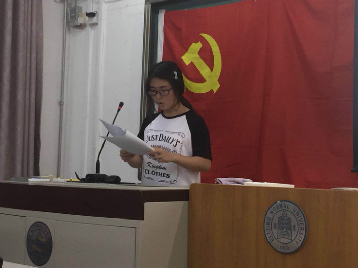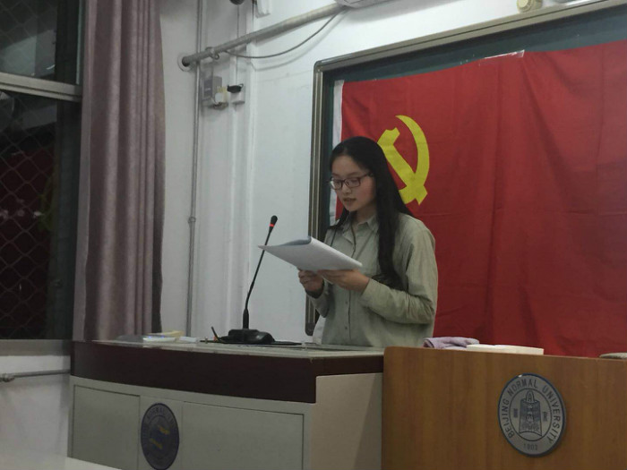 5月9号晚,本学期第一次、第二次欧洲杯 本科生党支部党员发展大会于教二105在庄严的《国际歌》合唱声中拉开序幕。两次会议由支部书记陈子卓主持,分别针对发展对象史博文、武晓红和刘畅同志,以及刘亭序、李一行和周婧怡三位同志的入党申请及相关情况进行了讨论和表决。大会共有9名正式党员参加,超过应到会正式党员人数的半数,没有到会的7名正式党员出具了书面意见。 第一次党员发展大会开始,主持人陈子卓同志对本次大会的流程及发展对象顺序进行介绍,随后三名发展对象逐一宣读入党志愿书。三名发展对象结合自身实际,陈述了自己的入党动机,表达了对中国共产党的向往,表示愿意服从党的领导,对党忠诚,积极工作,坚定不移跟党走,为共产主义事业奋斗终身。 随后,三位发展对象的入党介绍人分别宣读介绍人意见,其中武晓红同志的第一介绍人书面意见由支部书记陈子卓同志代为宣读,他们肯定了发展对象在培养考察期间的思想觉悟和突出表现,并且针对他们在生活学习中的不足之处提出了批评和建议。 第一介绍人的意见宣读完毕后,与会的同志就三位发展对象的优点和不足之处进行了民主评议。随后进行全体正式党员进行无记名投票。支部党员赞成接收史博文、武晓红和刘畅三位同志为中共预备党员。三名同志也表示将在实践中不断锻炼自己,更努力地为身边的同学服务,努力成为一名优秀的共产党员。
