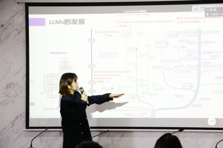 达婷博士的讲座聚焦两大核心议题: 首先是大模型在教育场景中的测评研究。她概要介绍了如何科学定义教育场景中的AI能力维度?大模型的实际教学能力如何?与人类教师相比存在哪些差异?如何根据人机各自优势合理分配教学任务?她结合最新研究成果,深入分析了AI在教育中的潜力与局限,为教育工作者提供了重要参考。