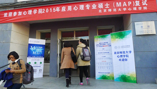 又是一年迎春开,北京师范大学心理学院应用心理学专业硕士(MAP)复试录取工作于近日圆满完成。 图一 北师大心理学院2015年应用心理专业硕士复试于2015年3月14-15日举行 北师大MAP做为全国首批招生培养院校,自2011年起开始招生。自2014年起进行了专硕招生培养的系列改革,开设了以职业为导向设置的专业方向,如全国首创的EAP方向,以问题为导向,问题解决为目标,通过系统的专业课程,帮助学生掌握职业心理健康促进与解决突出心理问题所需的理论知识和实务技能,构建员工心理健康帮助体系,培养心理危机应对能力,全面提升管理效能和员工幸福感,促进组织和谐发展。 随着经济社会的不断发展,应用心理学得到社会大众越来越多的关注和推广,全国的MAP培养院校也从2011年的30所扩展到了2015年的63所。北师大心理学院凭借其雄厚的心理学研究积淀,响应国家教育政策和社会亟需,在充分发挥和发展自身教育资源的基础上,招收、培养应用心理学专业硕士(MAP)。经过时间的检验,社会对北师大心理学院MAP的认可度得到了巩固和提升。2015年北师大心理学院计划招生200人。2014年录取推免生37人,2015年3月参加北师大MAP复试的考生278人,录取208人,2015合计招生245人。 本次复试分为资格审查、上机考试、面试三个流程。为合理安排各考生复试时间,工作人员将详细流程以邮件形式提前发送给考生,并在现场提供专门老师解答问题。考生对这种清晰有效的安排方式表示非常满意。复试当天,候考教室里为考生准备了茶饮、项目资料,播放复试流程和学院介绍,工作人员认真负责,处处体现了人文关怀,缓解了考生的紧张情绪。备考室和候考场秩序井然,考生整体发挥良好。北师大心理学院老师本着对学院、考生负责的态度,认真投入面试工作,共组织了39位由学院在职教师组成面试团队做专业的结构化面试。整个复试过程严谨有序,流程顺畅。 图二 2015年北师大心理学院2015年应用心理专业硕士复试现场掠影