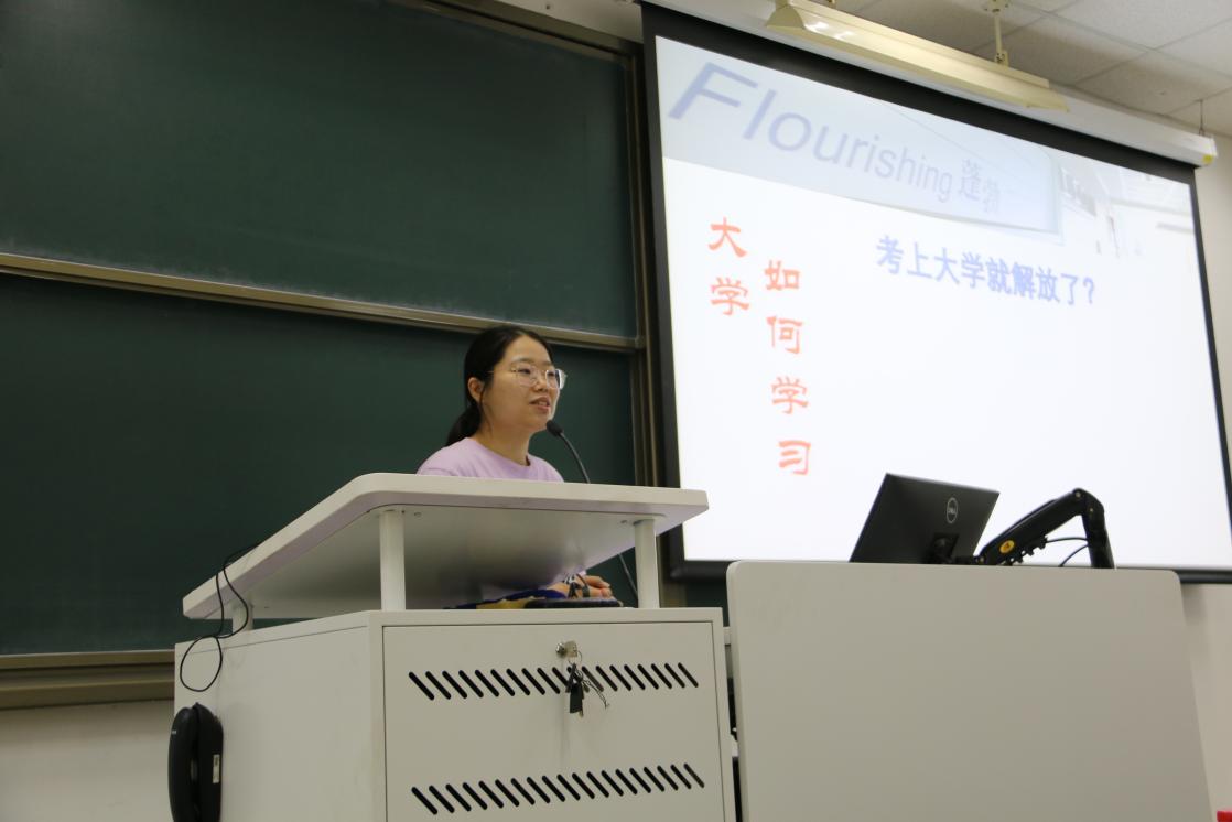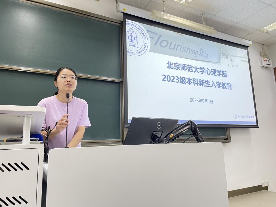 图8 李昕益老师介绍本科生奖助体系和勤工助学 李海虹老师详细介绍了学业辅导室提供的各项支持和资源,包括心理学方向介绍、升学分享和经验分享等,为保障同学们的学业发展提供助力,并预祝同学们取得优异的成绩。