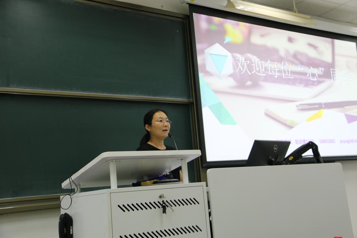 图10 黄利老师介绍心理健康资源及生活指导室 崔艳丽老师向大家介绍了本科生国际交流情况。崔老师从以往本科生学生交流情况、相关管理规定、现有的交流项目、获取交流信息的途径以及申请国际交流需要做的准备五个方面介绍了国际交流相关情况及政策。鼓励同学们积极参与国际交流项目,拓宽国际视野,增加跨文化体验,为未来的发展打下坚实基础。