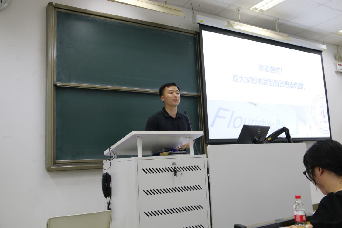 图4 周星辰老师介绍生涯发展与就业支持 杨宗茂老师从“大学生为何要加入中国共产党”为切入点,引导同学们积极思考入党的初心、党员的责任与义务,他还分享了本科生党支部的各种特色活动和风采,并向同学们详细介绍了入党流程,鼓励同学们积极向党组织靠拢。