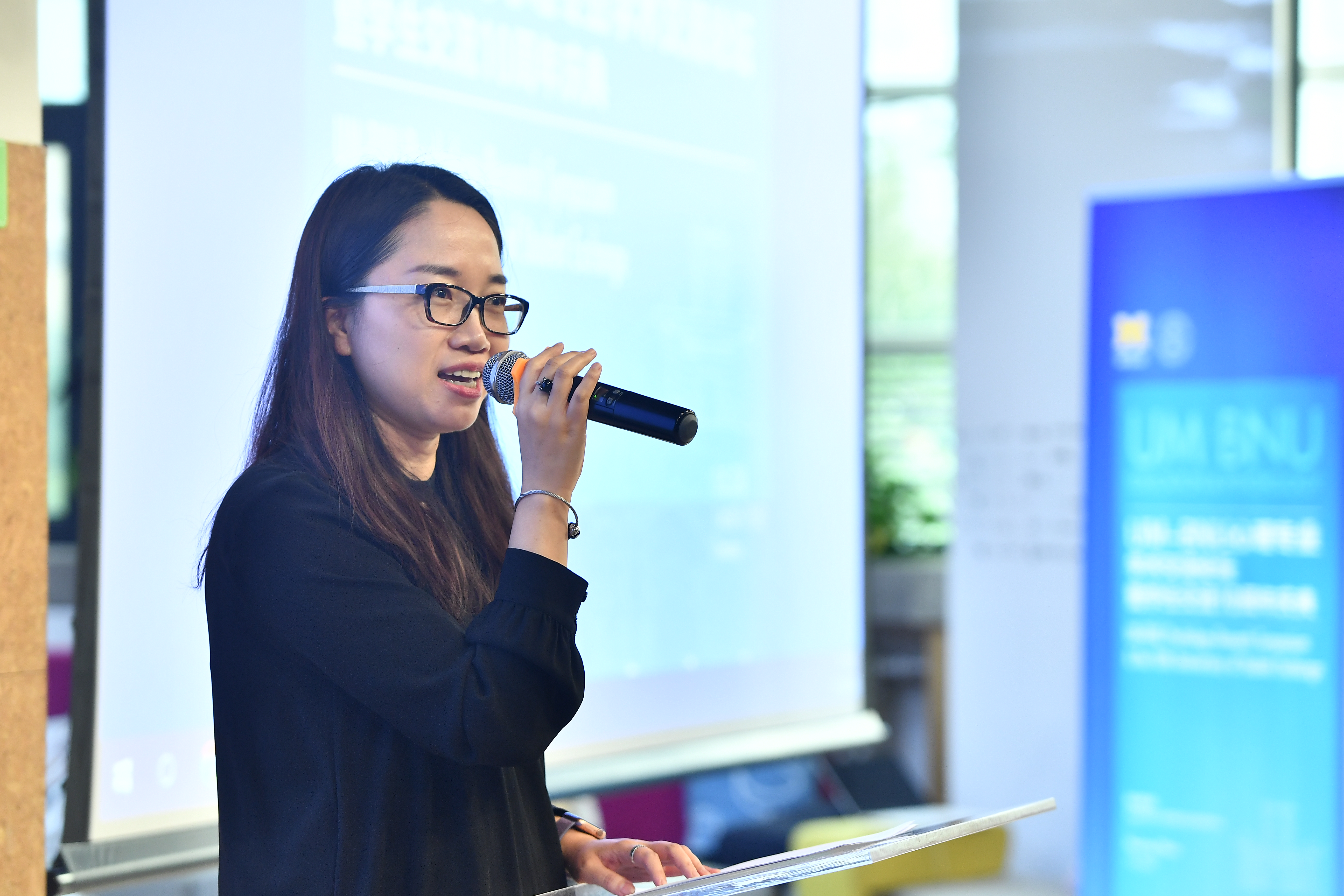 学术报告发言人,就家庭治疗中儿童对立违抗性障碍(oppositional defiant disorder,ODD)的风险及保护因子做了详尽的报告。Kevin Francis Miller教授作为密大学术报告发言人向大家介绍了课堂中的分心研究。从科研想法的提出到实验的进行,让同学们感受了密大教育心理学研究的魅力。其中一张早年在中国实验室进行的眼动研究照片更让同学们倍感亲切。Kevin的研究展示了教育心理学研究的实践意义,富有新意的研究主题和巧妙的实验方法,使得在场同学纷纷称赞。 蔺秀云教授和Kevin Francis Miller教授分别作为两校学术报告人发言 之后,由中美学生混合组成的五个报告小组分别报告了所在小组进行的研究,这些研究都是本学年密大学生来访北师大期间,在老师的指导下两校学生共同完成的。现场还邀请了华东师范大学和华南师范大学的同学进行了学术报告,各个小组精彩的报告内容赢得了现场阵阵掌声。 中外学生报告中 报告结束后,欧洲杯 副部长王君为参会的学生颁发了证书,鼓励学生们在这期间的努力,并对未来的合作表示了极大的期待。两校师生们互换礼物,在亲切友好的氛围中相互交流、合影。北师大与密歇根大学的交流已经走过了近40个春秋,相信双方的友谊将在未来的合作和交流中更加长远、深厚。 欧洲杯 副部长王君致辞