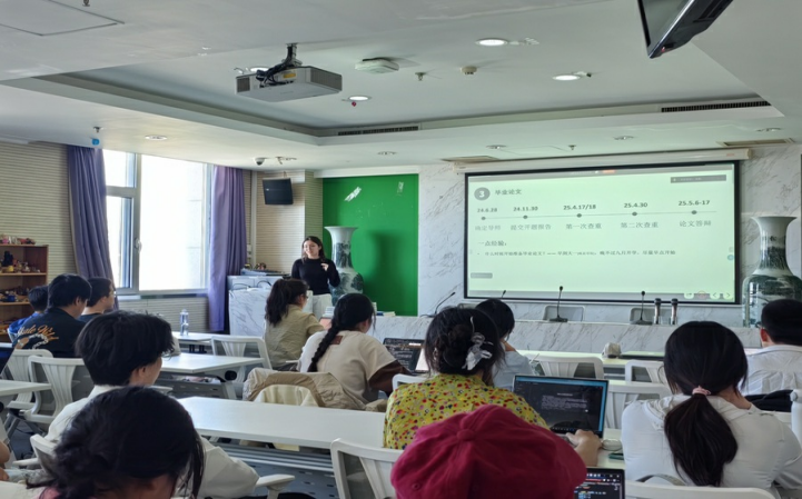 刘千荻师姐首先分享专业学习经验。她详细介绍了大一到大三各阶段的学习重点,强调实践活动对教学能力提升的重要性。在教育实习方面,她以在北京师范大学附属实验中学的实习经历为例,介绍了听课备课、心理测评、班主任工作等内容。关于毕业论文,她建议同学们尽早确定研究方向,并与导师保持沟通。