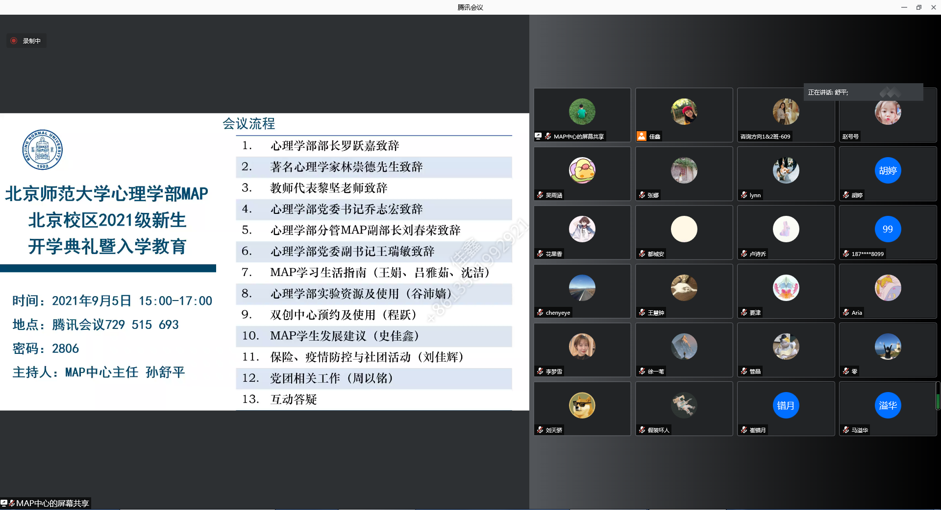 七月流火,求学路始。9月5日北师大欧洲杯 (北京校区)喜迎290余位MAP(应用心理专业硕士) 新生,迎新工作有序顺利完成。 为更好地欢迎新生入学,北师大欧洲杯 MAP北京校区举办了2021级新生开学典礼暨入学教育。为配合疫情防控工作需要,此次典礼采用线上形式举办,典礼由北师大欧洲杯 MAP中心主任孙舒平老师主持。 会上,北师大欧洲杯 领导老师们对新生给予了殷切希望。罗跃嘉部长致辞中对心理学应用广阔前景进行了分析与展望,对新生提出了期许。随后,著名心理学家、欧洲杯 资深教授林崇德先生致辞,“六个爱字”传递了谆谆教诲。欧洲杯教师代表黎坚教授代表教师致辞,感叹最美的北京秋天有你!有新同学!接下来,欧洲杯 党委书记乔志宏教授鼓励同学们始终保持积极乐观的情绪、勇于实践的信念、友善乐群的心态。欧洲杯 分管MAP副部长刘春荣老师期待同学们,打开心地图,拥抱变化,未来可期做有温度、有深度、有厚度的心理人。欧洲杯 党委副书记王瑞敏老师告诉大家:扬帆起航,行稳致远——读研期间如何处理好三种关系。接下来,欧洲杯 MAP中心、学工办公室、实验室中心等相关老师与同学们意义见面,向同学们简要勾画了未来两年的学习生活。 北京师范大学心理学科具有悠久的历史。一代又一代的北师大心理人不断奋斗,"长风破浪会有时,直挂云帆济沧海。"北师大欧洲杯 秉承传统,不断积淀,勇于创新,致力为我国的心理学和心理学教育做出贡献! 北师大MAP作为首批应用心理专硕的招生院校,自2011年起开始招生,是目前全国最大的应用心理专硕培养基地。经过多年的发展,逐渐探索出一条应用心理专硕的培养之路,响应教育部应用心理人才培养的号召,实行研究生分类招生培养,充分发挥学科优势,紧扣“国家急需”、“社会需要”,培养高层次的应用心理专业人才。 新生直道:终于走进我梦想的心理学殿堂,当自勉自勤,不负韶华。 最后,祝21级MAP新生们开学快乐!青春与子成说,人生不负韶华! MAPers,未来可期! 图1 北师大欧洲杯 MAP21级新生报到工作有序开展 图2 北师大欧洲杯 MAP北京校区2021级新生开学典礼暨入学教育 图3 青春与子成说,人生不负韶华--北师大欧洲杯 MAP北京校区2021级新生开学典礼暨入学教育圆满完成 |