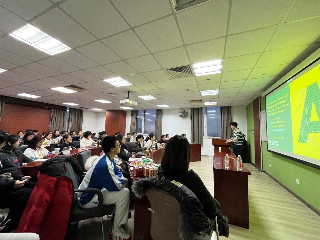 2024年2月24日晚上6点,23级励耘班春季学期第一次周六之夜宣讲在后主楼1420顺利举行。讲座由胡月琴老师主持,邀请了加拿大阿尔伯塔大学心理学系发展科学领域副教授郑尧老师面向全心理欧洲杯的学生进行宣讲。本次宣讲采取线上线下方式同时进行。