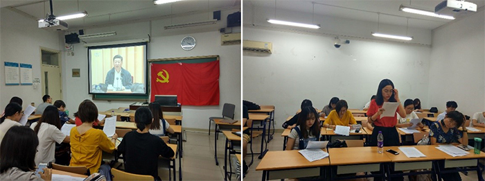 研究生第六党支部于2018年9月14日下午,在教四111召开了本学年第一次全体党员大会,共有13名党员和4名积极分子参加,另有2名党员因事请假。党支部书记杨颖同学主持了本次大会。 首先全体人员起立,奏唱国际歌。随后,党支书杨颖向大家介绍了本学期的工作计划和预计开展的学习习近平总书记系列讲话、理论学习读书会、国家宪法日以及固定党日等活动,向同学们征集关于活动的开展时间、开展形式等的意见建议,通过积极讨论和发言后,确定了最终的活动方案。 接下来进行习近平总书记系列讲话学习活动。本次活动选取了习近平总书记在今年内4月至九月的四段讲话,包括习近平出席全国宣传思想工作会议的重要讲话、出席全国组织工作会议的重要讲话、在全国教育大会上的讲话和在北京大学师生座谈会上的讲话。 结合纸质学习材料,活动采取播放视频和轮流出声朗读相结合的形式,共同学习习近平总书记的讲话内容。这种形式既提高了同学们的参与感,又能更加深刻地理解习总书记的讲话思想。同学们都认真朗读、聆听、思考,活动取得了不错的效果。 最后,出席活动的全体同学合影留念。 (研究生第六党支部 李昌锦、杨颖供图,李昌锦供稿) |