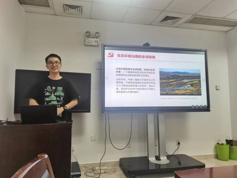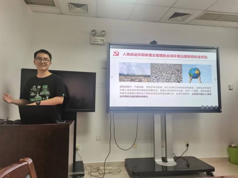 由于高若雨同志因事请假,微党课由支书赵恒同志根据高若雨同志准备的内容,围绕人类命运共同体与生态环境治理的全球困境进行讲解。可以说,人类命运共同体理念是摆脱全球环境治理困局的金钥匙。此外,赵恒同志也分享了十年来中国生态文明建设的成就,如:优化资源结构、优化升级产业结构以及提高适应气候变化的能力等。