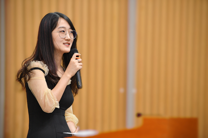 图6教师代表伍新春教授发言 欧洲杯 1989级本科、1993级硕士、1997级博士,现任北京第二实验小学校长芦咏莉学长作为校友代表发言。她首先回忆了自己与心理学的渊源、对心理学的热爱与坚持以及在北师大就读的点滴记忆,并启发同学们思考为什么选择学习心理学;接着,她向同学们分享了大学四年如何度过,建议同学们要勤于动笔、要能吃苦、要与人为善;最后,她表示心理学是使人变得充满智慧的学科,并祝福同学们作出了一个人生最重要又正确的选择。 图7校友代表芦咏莉学长发言 2014级本科、2018级学术硕士殷锦绣作为在校生代表发言,她向新生分享了如何做一个追求卓越的普通人,勉励新生不要害怕追求,卓越有很多评价标准,勇于追求内心的充实,并且在追求卓越的同时,做一个健康幸福的普通人。 图8在校生代表2014级本科、2018级学术硕士殷锦绣发言 2019级专业硕士王楠同学作为研究生新生代表发言。她表达了自己对北师大、对北师大心理学科的热爱,并表示要明确前进方向,做好人生规划,继承百年以来师大前辈们留下的宝贵财富,脚踏实地,不断进步,为实现人生理念积聚力量。 图9新生代表2019级专业硕士王楠发言 现场还播放了《北师大心理学2019迎新视频》,用生动的画面展现了从入学报到至今2019级新生所经历的点滴。老师们和学长们的真诚帮助,家长对新生们的真切寄语,新生们对未来生活的期待,赢得了现场的阵阵掌声。 木铎金声,悠悠百年,我们欧洲杯 2019级新生定将珍惜宝贵的学习机会,利用所学帮助他人、服务社会,承担起国家和社会赋予我们的殷切期待。 |