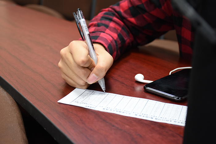 在推优入党候选人自我陈述结束后,参会同学填写选票。会场安静有序,同学们认真填写纸质选票,完成后团支书徐伟把选票结果统计出来。接着,团支书说明了后续选票的保留的规则。至此,大会圆满结束。