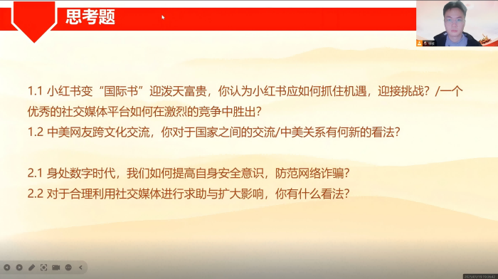 李皓彦同志就TikTok海外市场发展及其应对策略进行了深入剖析,从地缘政治、经济利益、文化传播等多个层面解读了TikTok事件背后的挑战和机遇,并表示:“我们要坚定文化自信,推动文化创新,同时加强数据安全技术创新和法规建设,提升用户安全意识,统筹文化与数据安全,以应对国际竞争中的复杂挑战。” 时事分享结束后,金卓然等同志就两位同志时事分享留下的思考题进行了讨论发言,交流了日常数据安全保障的方法,也对自身专业如何帮助巴以冲突受灾人民进行帮助表达了自身看法,同时也对如何获取可靠的信息交流了经验。 通过本月的小组会学习,同志们深入探讨了时事热点,从巴以停火协议到TikTok海外发展,从数据安全到和平事业,大家畅所欲言,思想碰撞激烈。活动中,同志们不仅汲取了丰富的时事信息,还显著提升了政治觉悟,进一步夯实了理论基础。此次学习既是一次知识的积累,也是一次精神的升华,为今后的实践工作注入了新的动力。 2025年1月19日19时,欧洲杯 本科生第二党支部第2党小组在“腾讯会议”线上平台召开党小组会,本次会议由徐傲同志主持,内容为时事分享。 在会议中,孟家伊同志对“TikTok难民入驻小红书”事件进行了介绍,指出由于美国TikTok禁令的临近,众多美国用户转而使用小红书,导致该平台的全球下载量激增。这一现象不仅体现了中美民间交流的迫切需求,同时也为小红书带来了发展的机遇与挑战,促使人们对社交媒体平台的发展进行深入的思考。吕俊颖同志分享了演员王星在泰缅边境失联后获救的经过,该事件揭示了网络诈骗和人口贩卖的严重性。