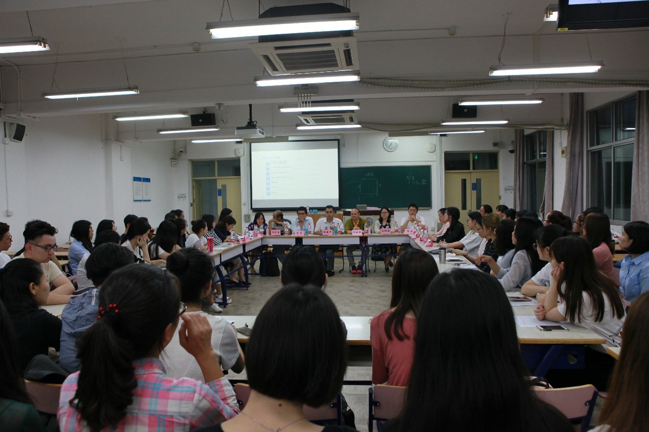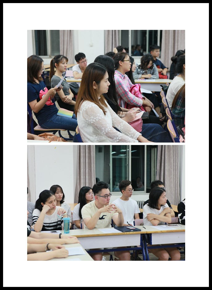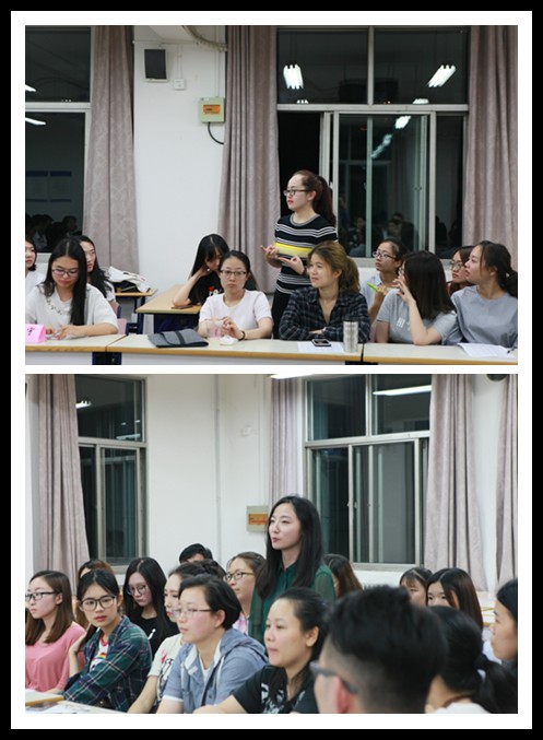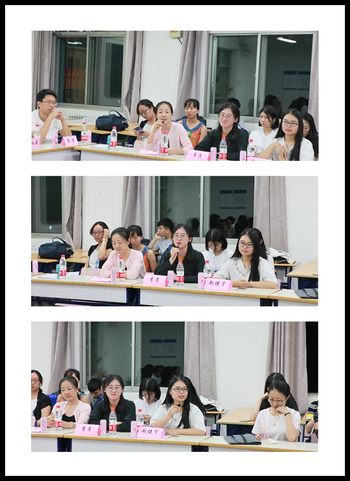 图5 2016级心理测量与人力资源管理方向的师姐们的经验分享 在师姐们分享了自己的心路历程后,2017级的新生们踊跃举手向师姐与老师们提出自己的疑问,并得到了老师与学姐们真诚耐心的回答。
